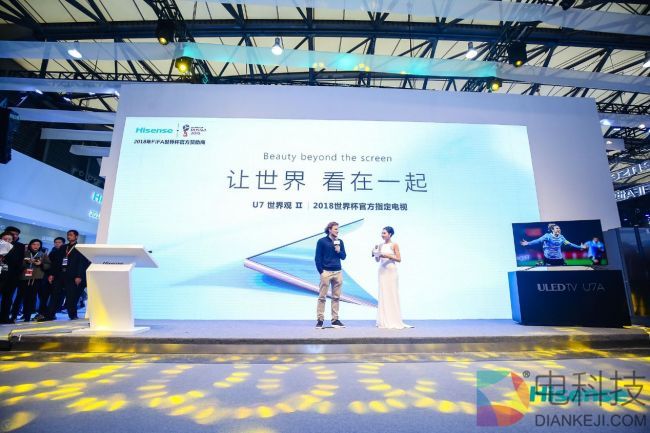 3月8日,上海AWE展首日,海信隆重发布了2018世界杯全新定制产品U7系列ULED超画质电视。U7是海信应用全球研发资源开发设计的全球化产品,并将在全球80个国家和地区上市销售。海信