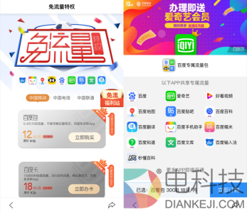 同时可享受包括百度APP、爱奇艺、百度地图、百度贴吧、好看视频、手机助手、百度糯米、百度输入法、百度翻译、百度文库、百度知道、百度百科、秒懂百科等等13个百度系平台的免流特权!