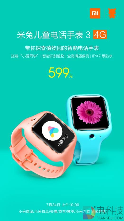 儿童手表作为一款兼具定位与通话功能的实用型产品,已经走入了很多有孩子的家庭。而今,在追求通话无卡顿、语音秒达、定位速度更快的过程中,4G联网的儿童手表逐渐成为主流,只是目前在售的4G版儿童手表价格居高不下,甚至接近千元手机,让很多家长还在观望。今天,小米生态链发布了4G版米兔儿童电话手表3,通话清晰、定位快,且搭载能说会听的“小爱同学”功能和智能识别植物功能,售价仅为599元,将于7月24日上午10点在小米商城、天猫、京东、小米有品、苏宁、小米之家同步开售,4G版的米兔儿童电话手表3有极高的性价比,感兴趣的朋友可以关注下。