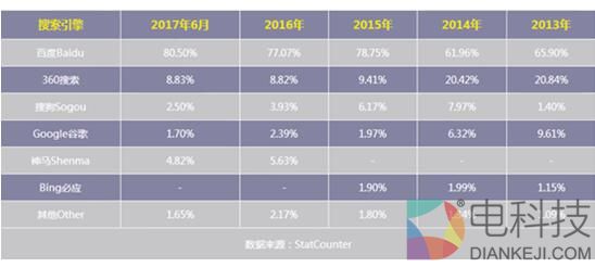 中国互联网搜索引擎的发展早已进入稳定期,百度、360、搜狗、神马四家本土互联网企业占据了绝对多数的搜索市场,并保持着较为稳定的份额,留给Google的中国市场空间不多。
