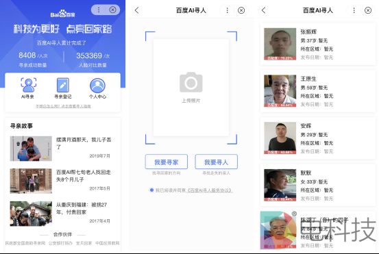查询“百度AI寻人”小程序的实时数据显示,截至11月7日,百度AI寻人平台共计收到用户上传照片35万余次,累计8408人成功比对,找回亲人。