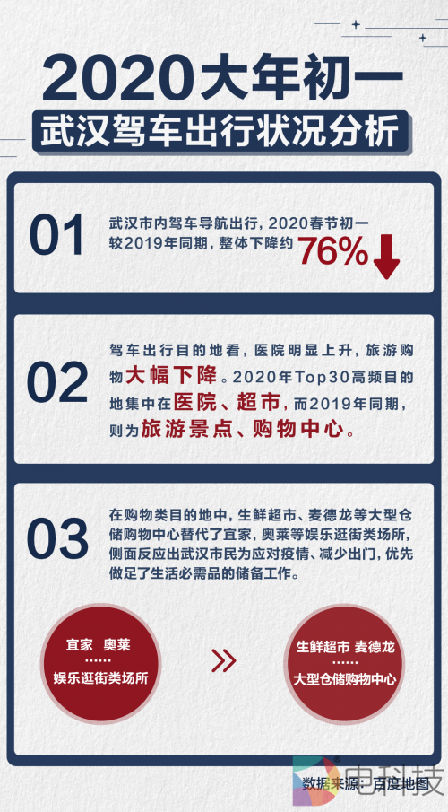 武汉市民们正在用实际行动全力支持防控新型冠状病毒疫情。减少出行、取消聚会、避免去人群密集公共场所,已经成为武汉人的日常。据百度地图提供的武汉出行数据显示,2020春节期
