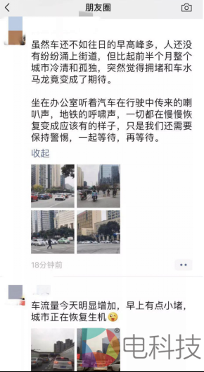 从昨天开始,不少网友纷纷在朋友圈、微博里晒出所在城市堵车的照片,话语中没有抱怨,反而还有点“小兴奋”。由于自春节以来,很多城市受疫情影响都变得空荡荡,网友们因车流量上升而产生的兴奋,正体现出了对城市恢复正常运转的向往。