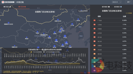 (3月25日百度地图迁徙大数据平台-全国迁出趋势)