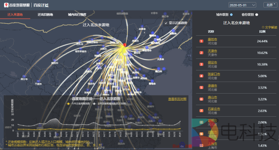 历经3个月的隔离限制,五一假期的到来使人们纷纷踏上了归家相聚、外出散心的旅途。百度地图迁徙大数据平台显示,5月1日全国总体迁徙规模较4月30日显著上升,但仍未达去年“五一”同期水平。当日,全国热门迁入地前五依次为:东莞、深圳、成都、广州、惠州;热门迁出地前五则为:成都、深圳、广州、上海、东莞。而在省份维度,热门迁入、迁出比例最高的省份前三均为广东、江苏、四川,广东以高达14.22%的迁入比例与16.48%的迁出比例,成为五一首日人口迁徙规模最大的省份。