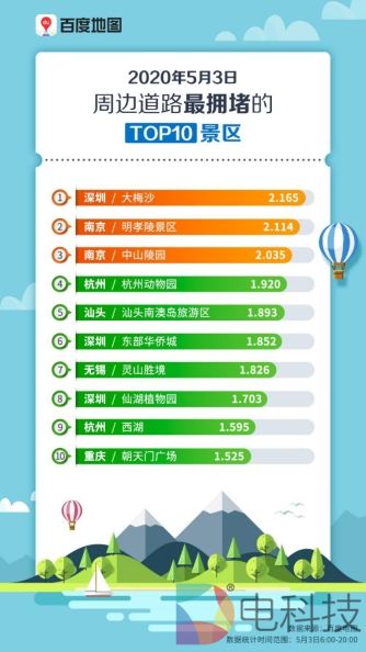 在旅游景区方面,5月3日景区拥堵情况较昨日大大缓解。深圳大梅沙拥堵指数虽较2日下降约50%,但仍为周边道路最拥堵的TOP1景区,同城的东部华侨城拥堵指数较2日也下降超30%。同时,南京中山陵园和明孝陵景区的热度依旧不减;杭州动物园、汕头南澳岛旅游区、无锡灵山胜境、西湖等景区的拥堵情况均有所缓解,一定程度上反映出游客行程的变化,假期临近结束,大家都减少了游玩计划,养精蓄锐准备复工了。排名前十的热门景区多位于南方城市,可见南方丰富的旅游资源依旧是游客的不二选择。目前,绝大多数旅游景区已恢复正常营业,但仍有部分景区因疫情防控部署暂停开放,游客可在出行前通过景区官方网站或百度地图了解景区营业状态,合理安排行程。