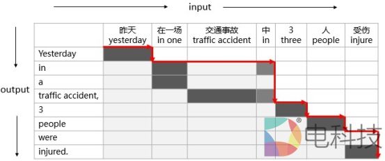 (横向箭头代表一个语义单元,纵向箭头表示翻译结果)