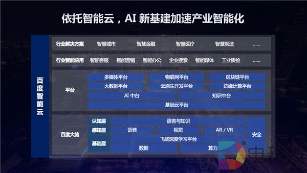 王海峰介绍,基于百度大脑,百度正在通过智能云,将领先的AI能力向各行各业输出。百度智能云融合了云计算、百度大脑、大数据等百度核心技术,提供了通用的基础云平台、AI中台、知识中台等多层次的平台,以及为各行各业赋能的智能应用和解决方案,助力产业智能化升级。