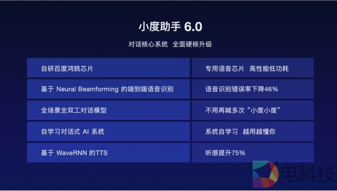 事实上,作为中国市场规模最大的对话式人工智能操作系统,小度助手的用户使用粘性不断增强,用户量也在不断增长。数据显示,小度智能音箱从2019年开始至今出货量全国第一,小度智能屏则保持着全世界销量第一名的成绩。如今,小度助手迎来全方面硬核升级,进入6.0时代。其中具有代表性的五个硬核升级分别为:自研百度鸿鹄芯片,基于 Neural Beamforming的端到端语音识别,全场景全双工对话模型,自学习对话式 AI系统,基于 WaveRNN的TTS。这些硬核能力,为小度向新场景、新人群的“破圈”提供源源不断的强大动力,将持续为用户带来更好的智能服务。