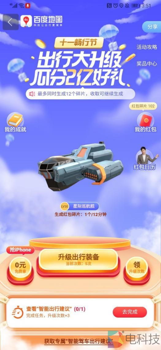 玩游戏不用“氪金”还能瓜分2亿好礼?是的,百度地图的“十一畅行节”活动就打造了两大福利会场,用全新游戏体验和丰厚奖励,给用户带来重重惊喜。用户在百度地图主页搜索“红包”,便能进入“十一畅行节”的“出行大升级”福利会场,收集红包碎片合成现金红包、出行津贴,现金奖励可以在10月1日当天提现。