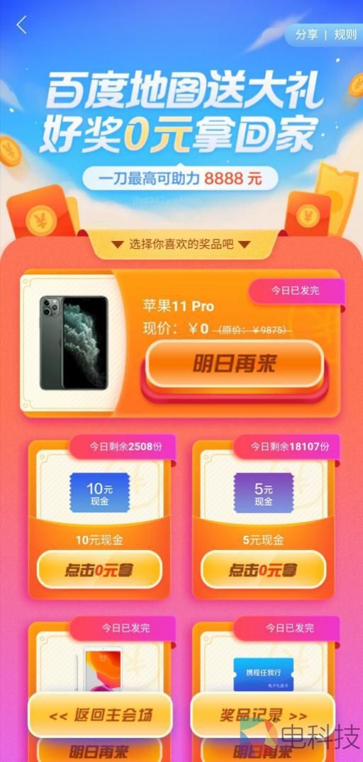 除此之外,在“十一畅行节”的“0元免费拿” 福利会场中,用户还有机会0元赢好礼。用户可以选择心仪的奖品并分享给好友帮忙助力,助力值满就能获得该奖品。只要为你助力的好友够多、手速够快,iPhone、iPad、千元旅行卡等惊喜好礼就能全部带回家!