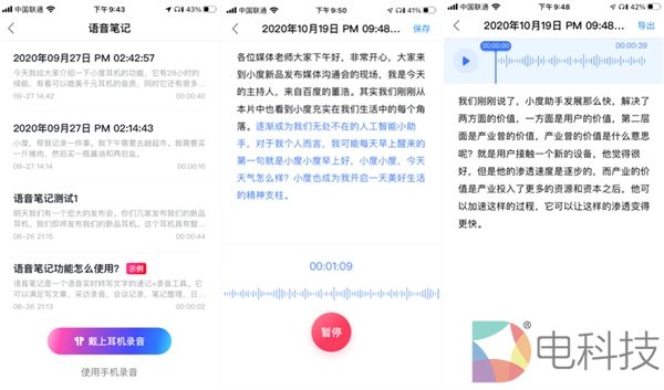 此外,在录音过程中,小度智能耳机可对语音实时识别,并即刻转为文字显示,实现一边录音一边记录。录音完成后,用户在录音回听时,可对文字进行简单的编辑,最后进行导出、备份,全程简单易上手。