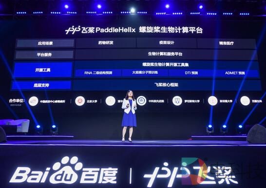 峰会现场,吴甜全新发布PaddleHelix螺旋桨生物计算平台。先期将开源螺旋桨生物计算开源工具集,提供包括RNA二级结构预测、大规模的分子预训练、DTI药物靶点亲和力预测以及ADMET成药性预测等在内的新药研发和疫苗设计环节的核心能力,帮助生物信息学、计算机交叉学科背景的学习者、研究者和合作伙伴,更便利地构建AI算法模型。