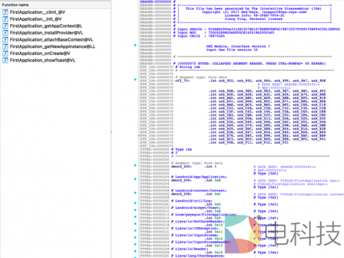 通过逆向工具查看经过保护后的DEX文件反编译效果,可见保护后的核心代码得到了保护,无法查看具体函数方法,不易被逆向分析,重要的数据和业务逻辑不易被泄漏,达到了代码保护的目的。