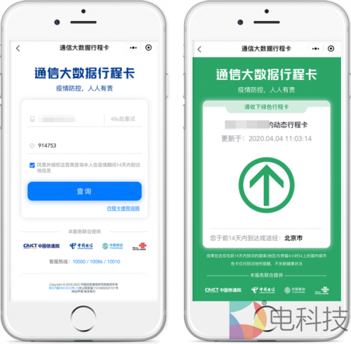 “通信大数据行程卡App”(简称“行程卡”)是在工信部指导下,由中国信息通信研究院与中国电信、中国移动、中国联通三大电信运营商共同推出的行程查询服务,该服务于2020年2月13日面向公众推出,用户可免费查询本人14天内的到访地。上线仅一个多月累计查询量已经超过8.5亿次。