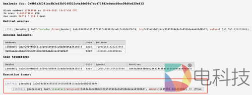 3.在2021年4月19日,攻击者0x83a2eb63b6cc296529468afa85dbde4a469d8b37利用两受害者的账户向攻击者的账户分别转账了1,035,555.826203866010956193和1,799,990个EASY。交易的记录如下: