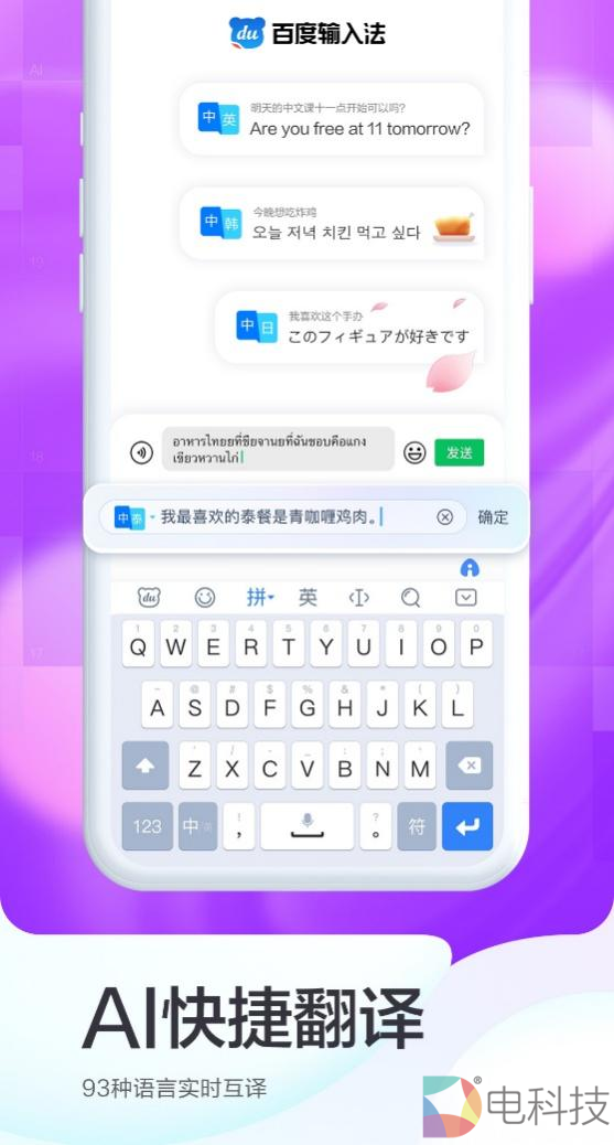 除AI助聊新功能外,在语言翻译方面百度输入法的表现同样抢眼。此次更新,百度输入法搭载业内领先的百度翻译能力,上线支持95种语言互译的业内最强“快捷翻译”功能,不仅可以解决用户沟通更快、更精准的诉求,也能满足用户在多场景的使用需求,助力实现“沟通无国界”。