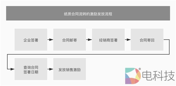 该企业拥有一套清晰的销售激励管理制度,销售奖励依据合同签署时间进行发放。以往的销售激励发放流程为:企业签署→合同邮寄→经销商签署→合同寄回→查询纸质合同签署日期→发放销售激励。