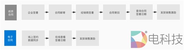 通过合同电子化,如今该企业的销售激励发放流程如下:线上签约,数据同步→在线查看签署日期→发放销售激励,流程节点降低为纸质合同流转时的二分之一。