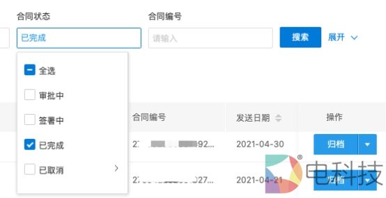 图源自上上签电子签约云平台,管理人员可查询合同签署状态