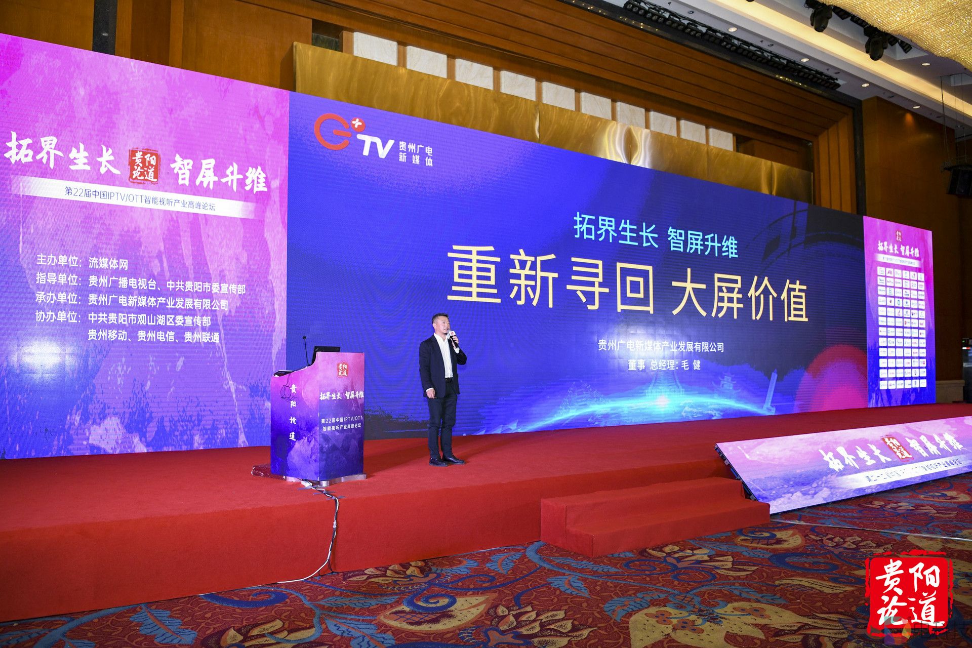 2021年10月20-21日,由贵州广播电视台、中共贵阳市委宣传部指导,流媒体网主办,贵州广电新媒体产业发展有限公司承办,中共贵阳市观山湖区委宣传部、贵州移动、贵州电信、贵州联通协办的第22届论道暨中国IPTV/OTT智能视听产业高峰论坛在贵阳隆重举行。