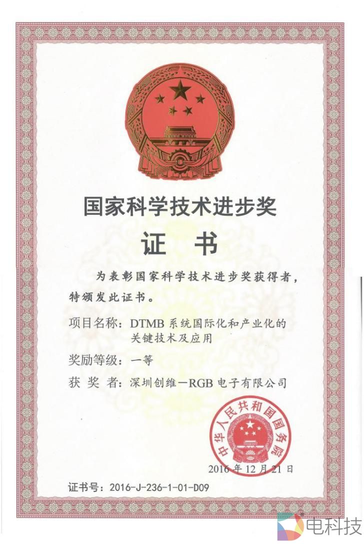 5年前,由创维等中国彩电企业参与的“DTMB(地面数字多媒体广播)系统国际化和产业化的关键技术及应用”项目,荣获“国家科技进步一等奖”,这是中国家电产业企业首次获得中国科技界最高级别的奖项。DTMB技术在2011年底正式成为国际标准,现已在十几个国家应用,覆盖人口超过20亿。