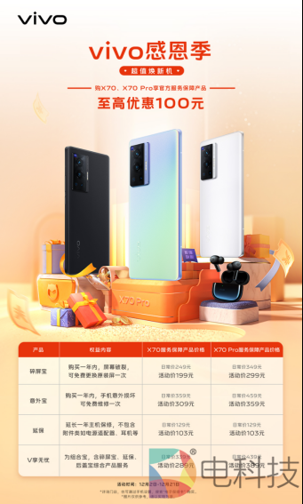 为了满足消费者的需求,vivo于今日正式开启了“vivo感恩季,超值焕新机”主题活动。12月2日起,选购X70系列尊享两重礼:购买vivo X70、vivo X70 Pro所有版本立省500元;官方服务保障产品优惠购,提供延保、碎屏宝、意外宝等服务,至高优惠100元。从销售到售后,vivo给出了实打实的福利。