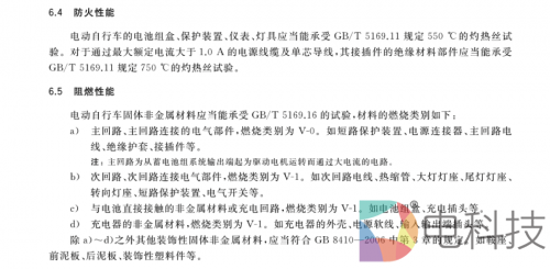 电动自行车的电池组盒、保护装置、仪表、灯具应当能承受GB/T 5169.11 规定的550°C的灼热丝试验;