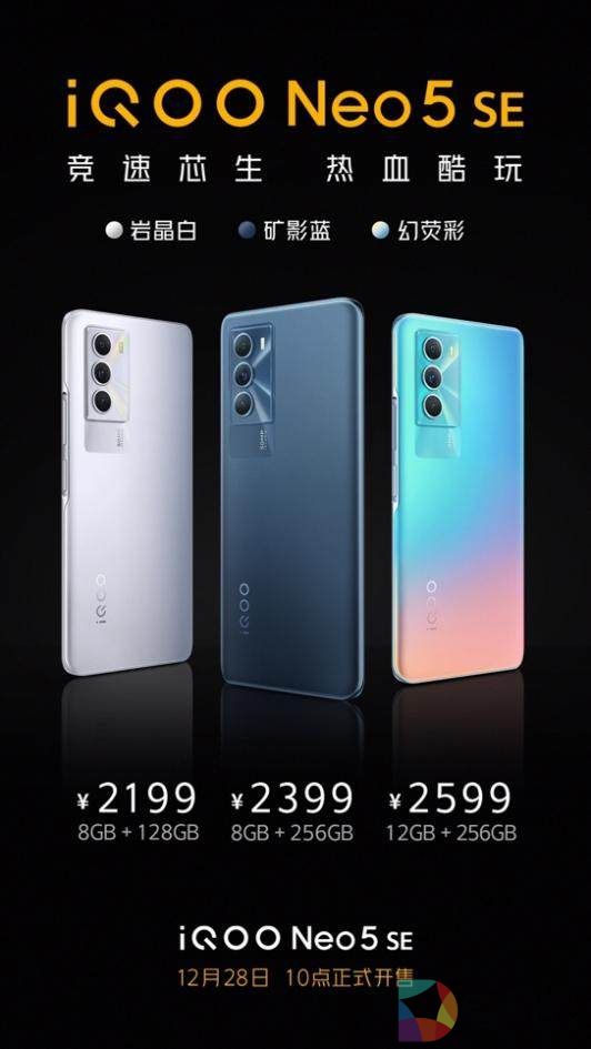 12月20日,iQOO发布了旗下最新产品iQOO Neo5S和iQOO Neo5 SE。iQOO Neo5S已于24号正式开售,首销当日斩获多平台销量&销售额双冠军;而Neo系列另一款新品iQOO Neo5 SE也将于明日(12月28日)上午10:00在vivo官网、京东、天猫、苏宁易购、拼多多等渠道正式发售,iQOO线下专卖店、电竞馆、及各大授权门店、vivo体验店同步开售。
