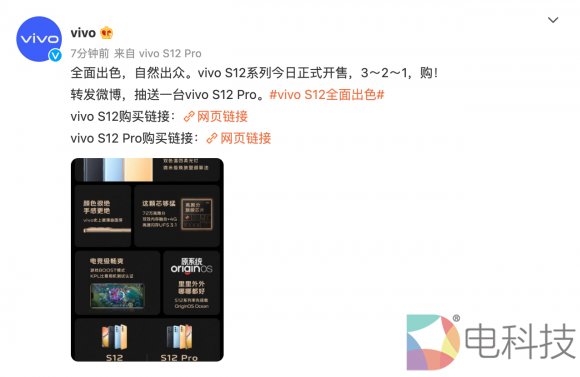 12月30日,vivo官方发布开售海报,官宣新一代先锋影像旗舰vivo S12系列正式全网首销。后置1亿像素+前置5000万双摄、vivo史上最薄曲面屏、高跑分旗舰芯片、电竞级体验,以及Origin