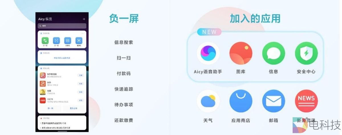 • 预装Flyme适配App,首次加入负一屏、安全中心、Aicy语音助手、短信、图库