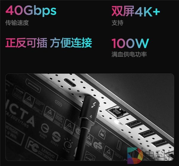 联想(ThinkVision)P40w采用了雷电4接口,可能一线传输音视频以太网信号并提供反向供电,其总数据传输速度最高可达到40Gbps,大大加快了职场中文件传输的效率,办公效率进一步提升。在兼容性上,联想(ThinkVision)P40w拥有包括DP、HDMI、音频、USB等高达12个接口,办公中你需要的接口基本都能在P40w上找到。