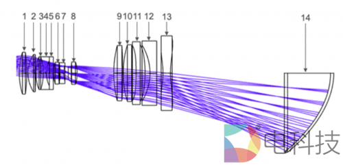 (超短焦镜头的镜片分布)