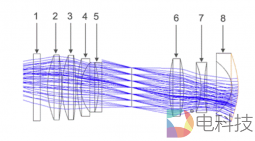 (普通投影镜头的镜片分布)