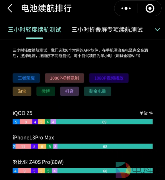 续航方面,iQOO Z5采用了5000mAh电池+44W 闪充的黄金组合,是小白测评3小时轻度续航测试中排行第一的机型。