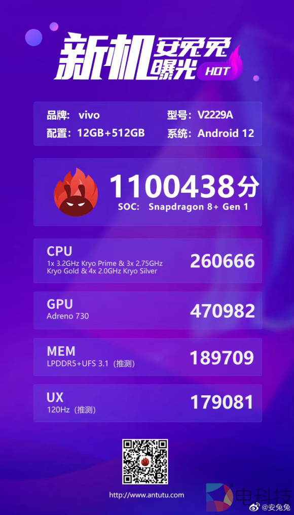 早在周一,vivo高管在其个人微博对X Fold+进行预热,宣布将会在X Fold的配色基础之上增加红色外观,并且将快充升级到有线80W和无线50W,电池也增加到了4730毫安时,这让X Fold+充电速度更快、续航更长。而产品性能部分,vivo X Fold+将搭载骁龙8+旗舰芯片。根据安兔兔APP的截图显示,X Fold+的跑分更是超过了110万分,不仅在折叠屏手机产品线中遥遥领先,即便是放在整个手机行业当中来看,也是当之无愧的旗舰级产品,让X Fold的天花板配置做到了恒者更强。