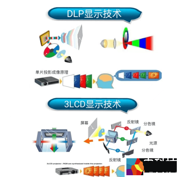 目前投影技术相对常见的有5种,LCD、3LCD、DLP、3DLP、LCoS。过多的专业解释就不占篇幅了,直接说结论。