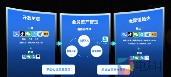 客如云在“公转私”方面有丰富的经验,能够通过小程序和CRM营销系统,帮商家将抖音等平台吸引来的流量转化为商家自有流量,从而更精准的进行会员管理,形成一整套完整的拉新-引流-获客-复购的数字化升级链路。