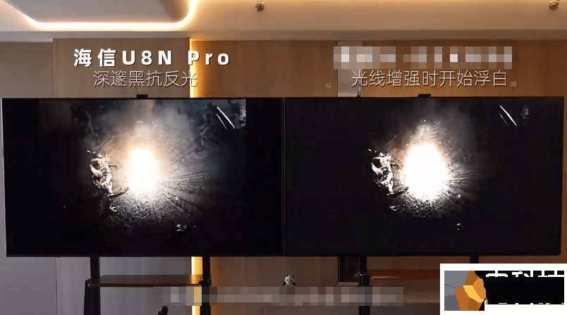 首先,超低反肯定是必然选项。在反光对比中,随着光线从清晨到中午逐渐明亮,竞品S的屏幕略显泛白,人从屏幕前来回走过,有较明显的人影晃动。而海信电视U8拥有专属定制的黑曜屏 Pro,具有1.28%的超低反射率,自始至终没有出现反光和泛白,且从其前方走过,几乎看不到人影晃动。