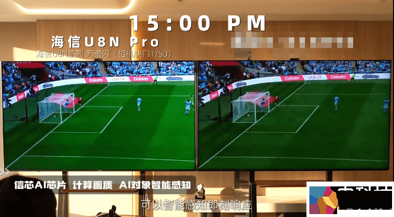 而在观赛场景的对比下,竞品S和海信电视U8都有很好的画面流畅度和清晰度,只是竞品S在沉浸感方面稍有欠缺。海信电视U8则依托AI对象智能感知、AI局部对比度提升,精准识别体育场景,球员、球场呈现的更加细腻、真实,看球时,代入感更强一些。