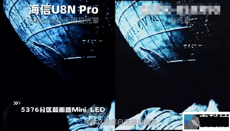 即便是同一环境光,亦有控光不同。比如播放《权力的游戏》时,竞品S和海信电视U8在明暗交界处都出现了光晕,只是竞品S的光晕相对较多,海信电视U8因为自带5376分区超画质Mini LED,可以1:1逐点控光,因此光晕较少,细节更为清晰。