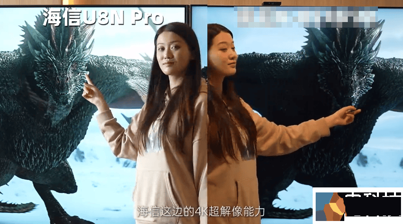 之后在2K片源的播放对比中,竞品S优化效果也不错,但在画面边缘的质感处理上有待加强;海信电视U8AI超解像能力将这一点处理的更好,边缘锯齿之类的都补偿的顺滑完整。
