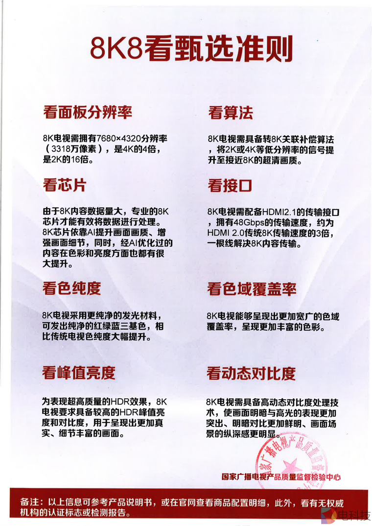 然而,目前8K电视市场上鱼龙混杂,真正掌握8K超高清电视技术的厂商并不多。因此,消费者如何选购一台真8K电视,显得尤为重要。从最近TCL联合国家广播电视产品质量监督检验中心推出的《8K8看甄选白皮书》可以看出,真正的8K电视,不仅需要达到8K分辨率,还需涉及8K芯片、算法、接口等配置和功能,才能够称之为真正意义上的8K电视。