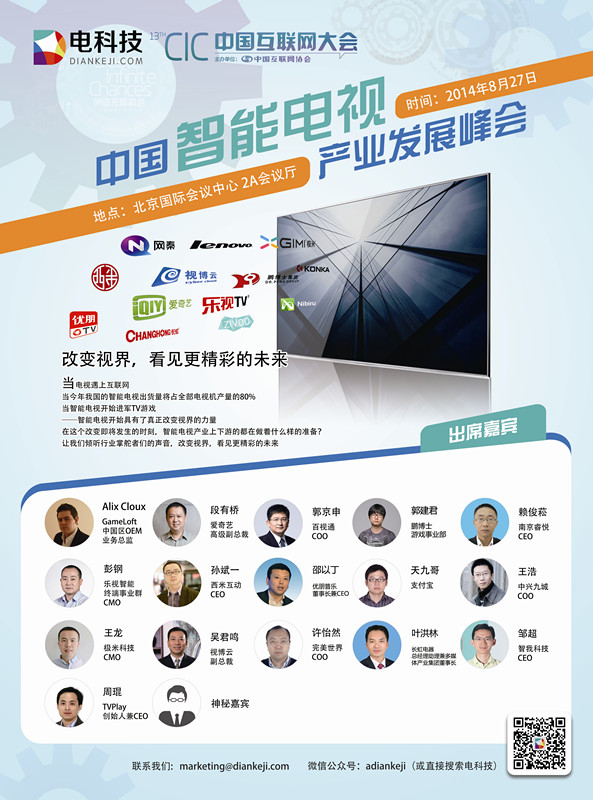 现在,只要小伙伴们能够亲临2014互联网大会中国智能电视产业发展峰会的现场,上述的一切就尽在你的掌握之中了。会议当天更有神秘嘉宾现身,什么国内电视游戏创投第一人啦,什么幕后大牛啦……电科技都将为你情怀呈现。