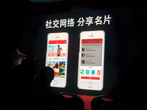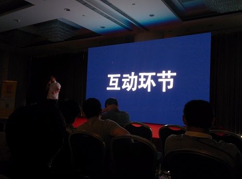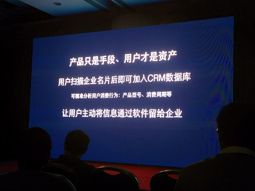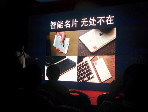 互动环节,张总向台下提问有多少来宾带了超过100张名片?名片数量不够将如何解决?看来新产品就要登场了。
