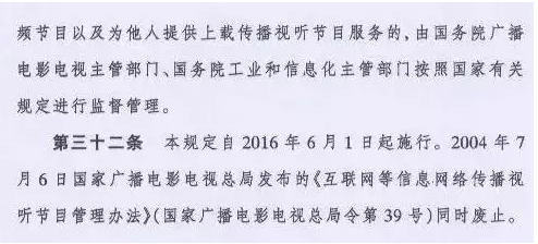 颁布于2004年,对视听新媒体产业起到决定性作用的《互联网等信息网络传播视听节目管理办法》(39号令)将于6月1日被废止。