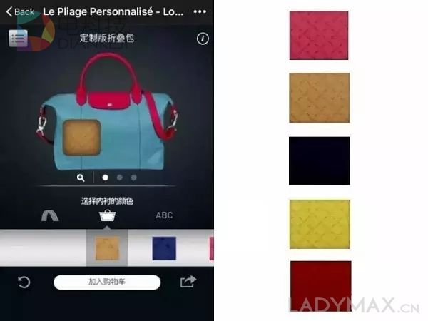 除了个性化服务,当然少不了奢侈品牌最爱的「个性定制」。法国著名奢侈品牌 Longchamp 在今年 5 月通过微信提供「全民定制」服务。此前奢侈品牌只在特定时间和指定的门店提供定制服务,顾客很难定制到专属包袋。而今年 5 月微信推出在线定制服务后,顾客可以随时使用微信平台进行定制,选择颜色和刻字后,通过微信或支付宝付款。英国奢侈品牌 Burberry 也与微信合作,为微信的订阅用户推出了定制服务,为用户即时订制个性化秀款专属名牌,刻上自己的英文或中文姓名。