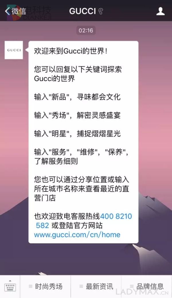 去年年底在上海召开的「DigitalLuxury Keynote」奢侈品顶级峰会指出,据统计,尽管目前大多数奢侈品牌都拥有微信公众号,但许多账号目前在功能应用方面仅仅刚刚起步,包括先进的客户管理(CRM)系统仍未得到善用。今年 L2 的 Digital IQ Index®: Luxury China 报告也指出,只有 17% 的时装品牌和 16% 的珠宝 & 腕表品牌通过微信提供会员服务。但「Digital IQ」指数排在首位的周大福,其微信公众号里就提供了绑定会员卡、开卡、查询会员特权等功能,而 Gucci 还提供「保养」、「维修」等服务细则。
