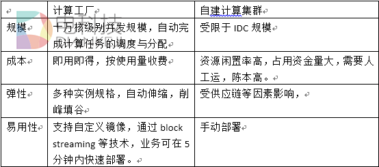 而与传统的自行搭建计算集群相比,计算工厂更是优势明显: