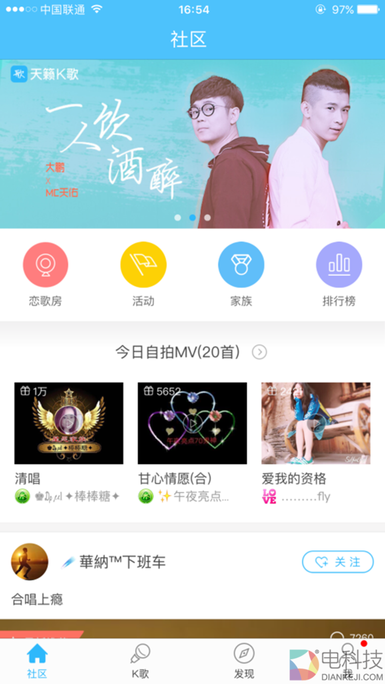 不过需要歌友们注意的是,此次活动仅限于《一人饮酒醉》的翻唱,形式不限;歌友们只需打开“天籁K歌”APP,点击社区顶部的推荐图即可参加,在活动开始后便可将作品上传至个人主页,提交作品参赛。